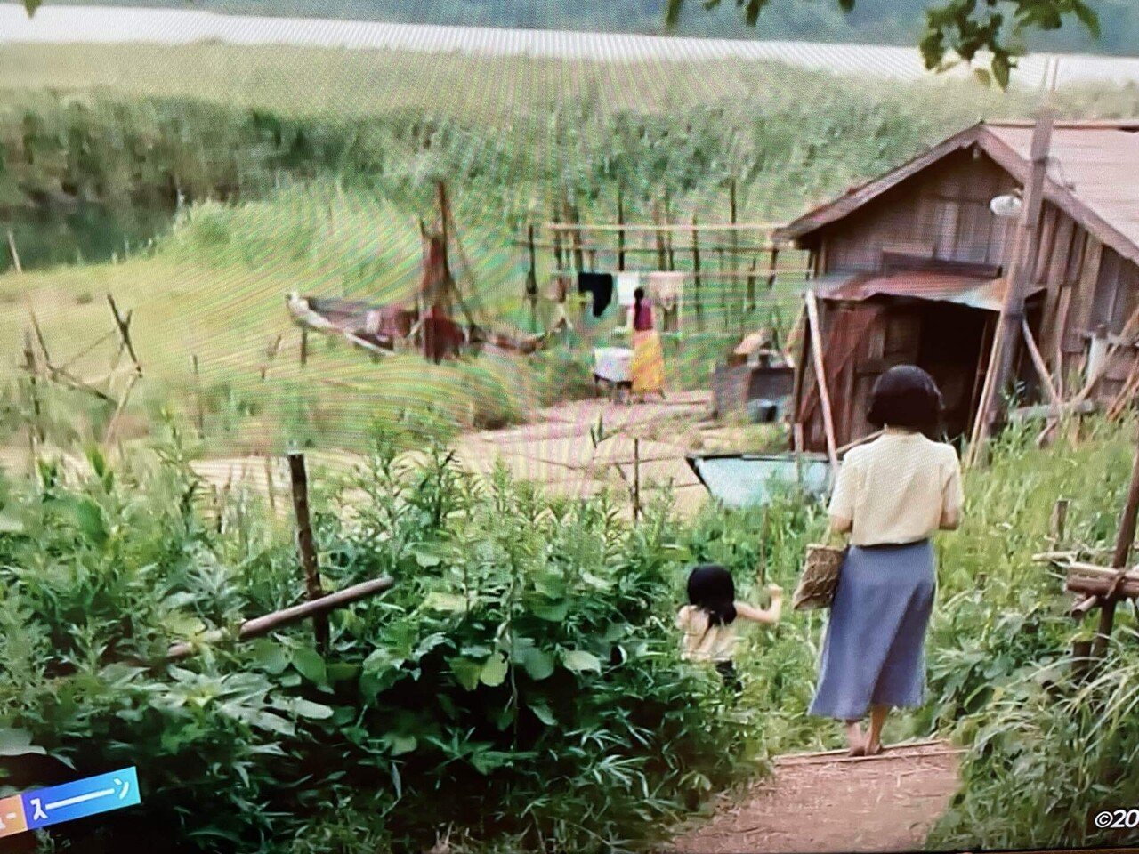 その舞台は1953年の長崎です。広瀬すず演じる若い悦子は結婚して団地に住んでいます。その団地からは川べりの草地のなかに荒れ果てた木造のバラックのような一軒家が眺められ、ひとりの派手な服を着た女がそこに住んでいて、時々アメリカ兵が訪ねてくるようです。