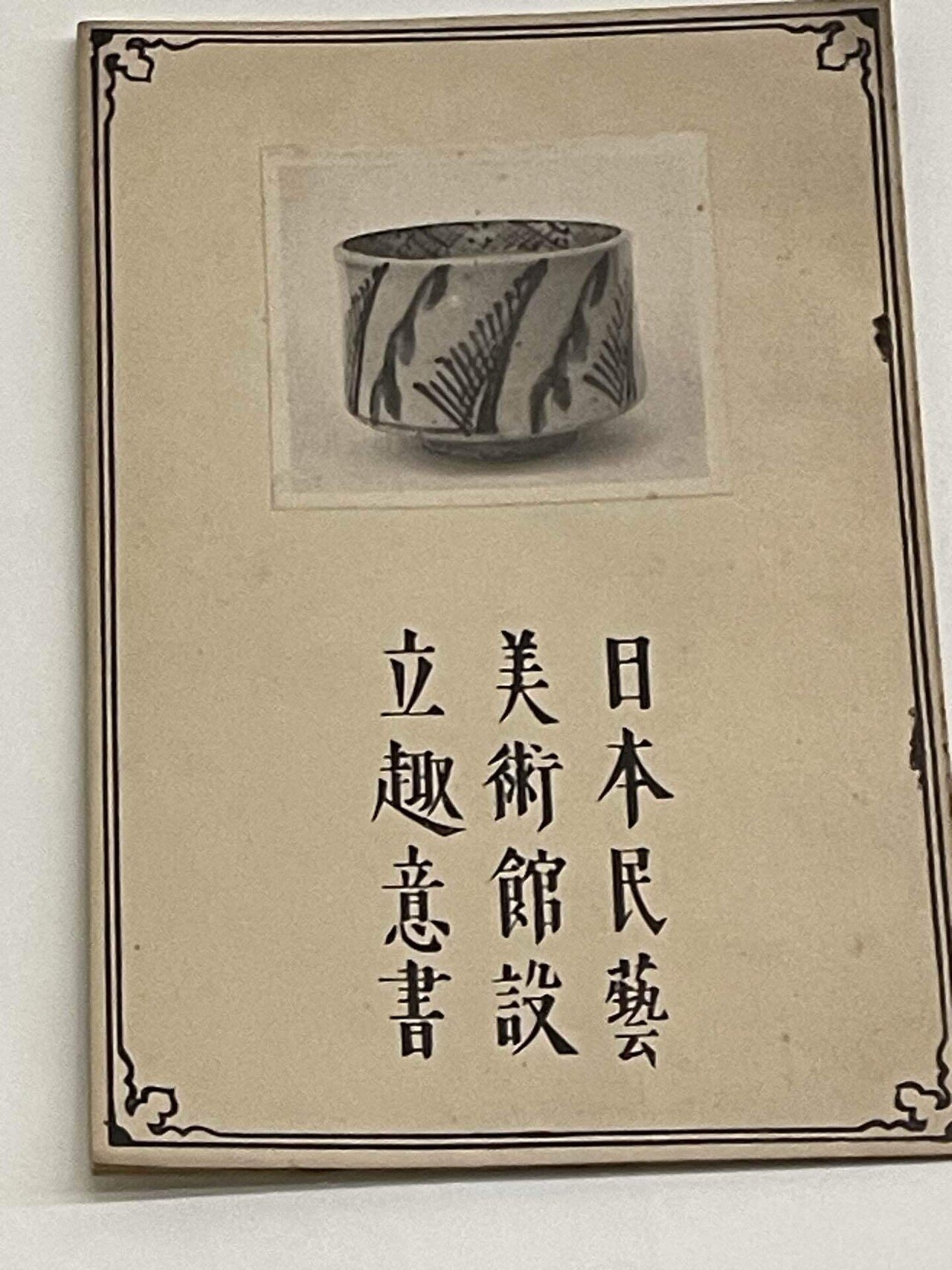 そして、1926年(大正15年)4月、柳、河井、濱田に富本憲吉を加えた四人の連名で「日本民藝美術館設立趣意書」を発表します。