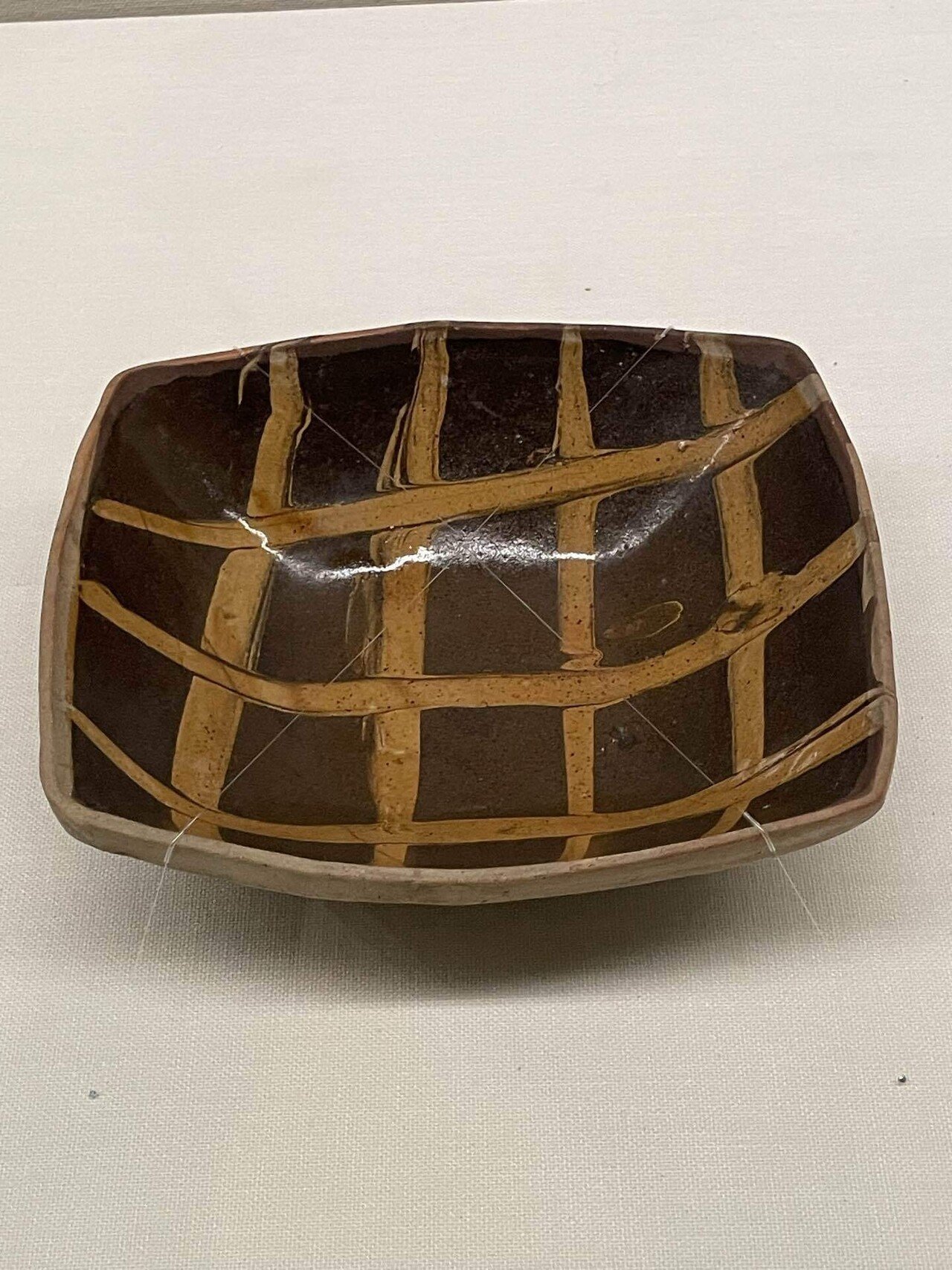 ©京セラ美術館「民藝誕生100年」展 スリップウェア格子文角鉢 濱田庄司