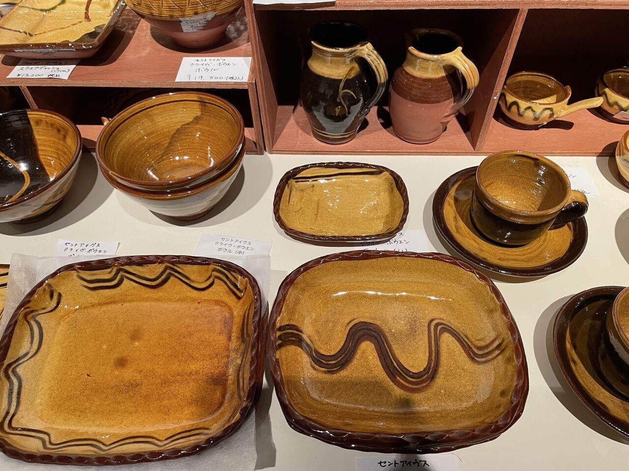 京セラ美術館「民藝誕生100年」展 売店のスリップウェア製品