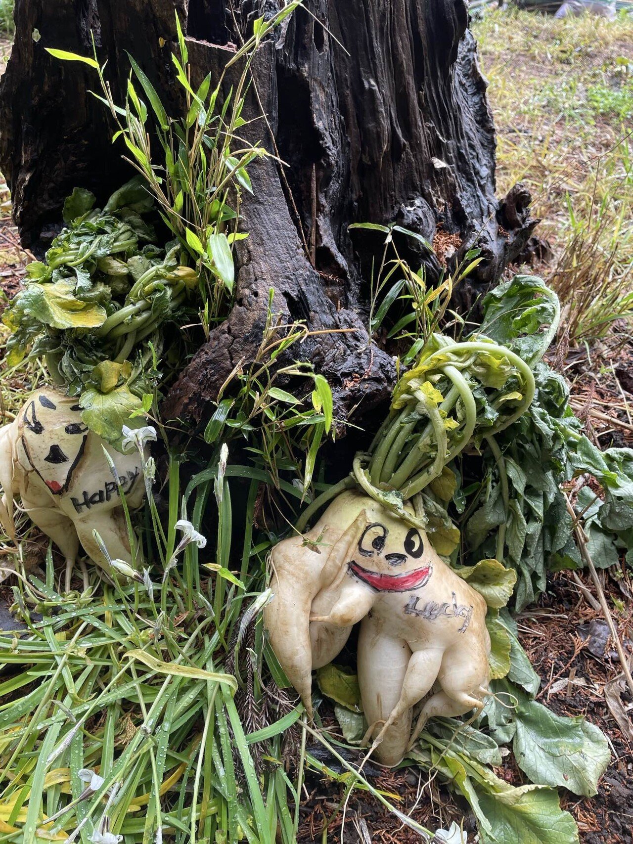 帰り道で面白いダイコンが置いてあり、また久しぶりにカタツムリを見つけました。